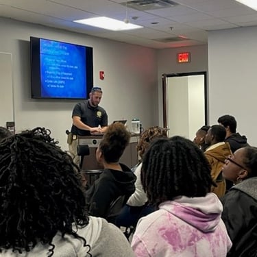 Two of the Muscogee County schools, Shaw and Kendrick High School participated in our Career Transitional Day that was held at the Economic Development Center in Columbus, Georgia. The day was filled with speakers and representatives from local industries, post-secondary institutions, the Georgia Bureau of Investigations (GBI) and the HSHT Trainer, Joy Norman. Mr. Pouncey, from the Ozark Bank talked about the benefits and dangers of credit card use. Members from Columbus Chamber of Commerce shared interesting information about the many career opportunities that Columbus has to offer. Mrs. Joy Norman did an interactive presentation on Self-Advocacy. She allowed the students to create a picture of themselves using categories to determine how to react in different situations according to their personality to advocate for themselves. The GBI presenters, stole the show with real-life situations that they encounter on a day today basis. The students found themselves amazed at the enlightening demonstrations and the career opportunities available in their area. The students showed enthusiasm by asking questions, roleplaying, and winning door-prizes. The transition day was a fun-filled learning experience for students from both Kendrick and Shaw high schools.